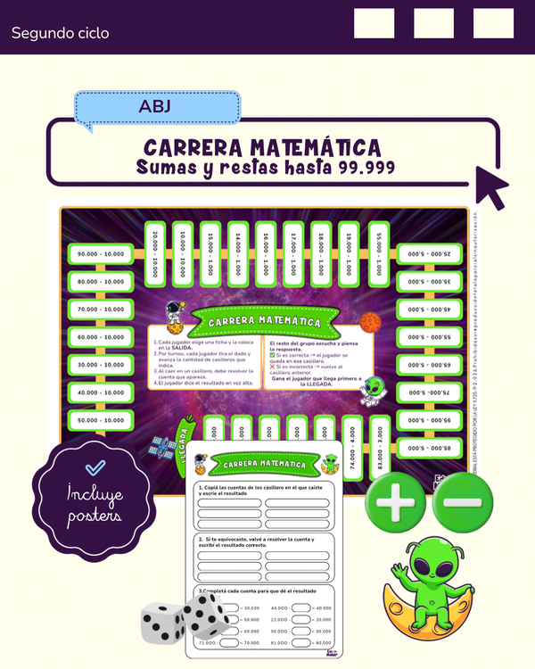 Se incorpora un tablero en blanco para que, en equipos, los estudiantes creen su propio tablero con cuentas de suma y resta y luego lo intercambien con otros grupos para jugar.