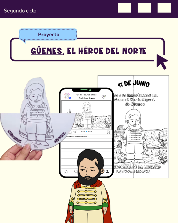 Conocer a Martín Miguel de Güemes y su rol en la independencia, con actividades creativas y colaborativas.